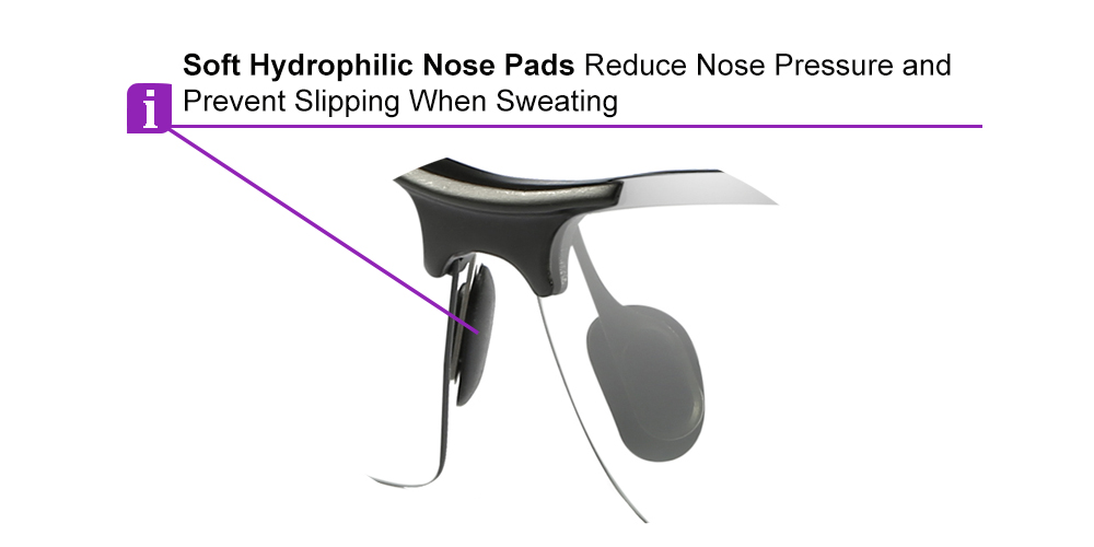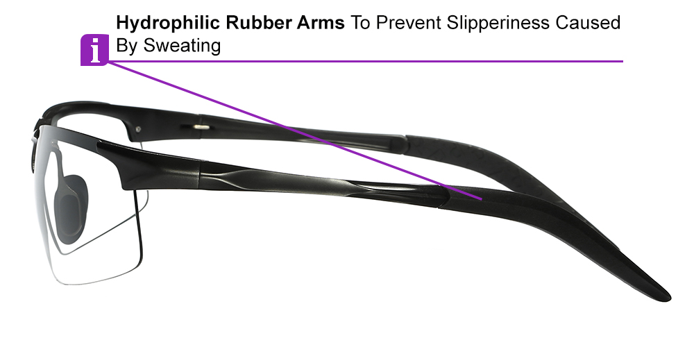 The frame is conceived to maximize your comfort with its new wrap-around design, functional spring hinges, and anti-slip rubber temples.