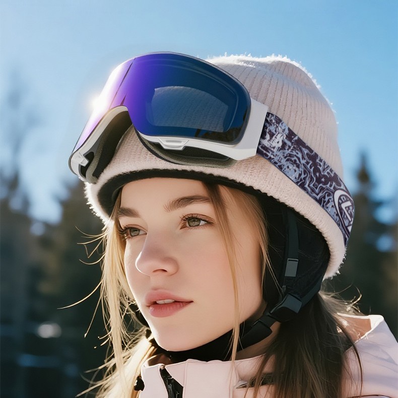Flip Up Anvik Prescription Ski and Snowboard Goggles Blue White - Dual Layer Anti Fog Lenses - Impact Resistance and UV Blocking Snow Glasses