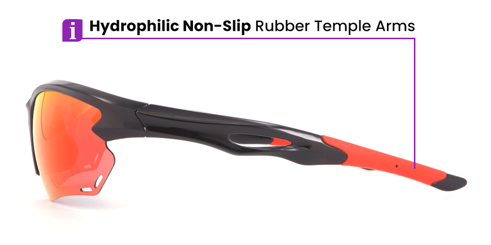 The soft non-slippery materials in the nose pads and temple arms also guarantee a comfortable fit, even in wet conditions.