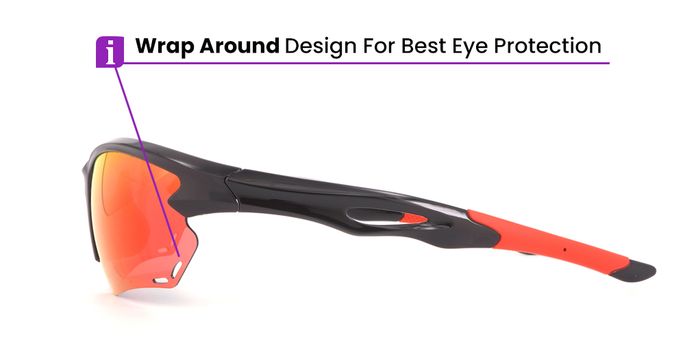 These dashing sports glasses offer an outstanding protection from debris and light, thanks to their ultra-wide polarized lens and innovative wrap-around shape.