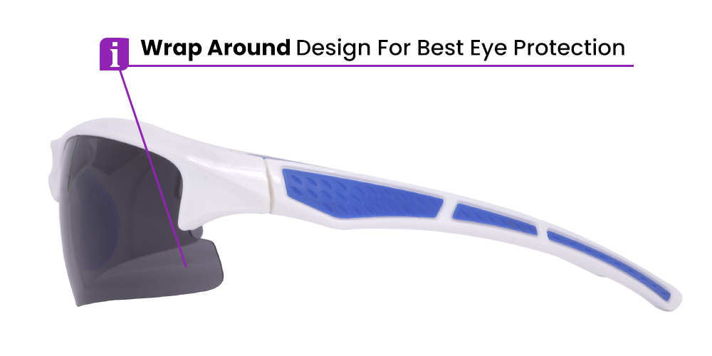 These dashing sports glasses offer an outstanding protection from debris and light, thanks to their ultra-wide polarized lens and innovative wrap-around shape.