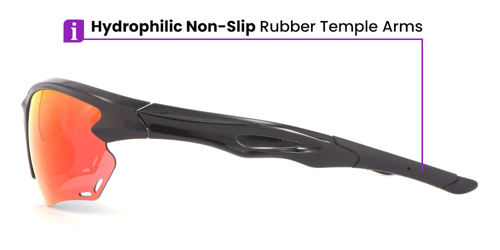 The soft non-slippery materials in the nose pads and temple arms also guarantee a comfortable fit, even in wet conditions.